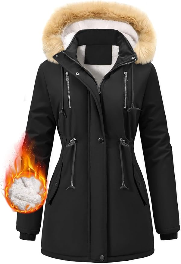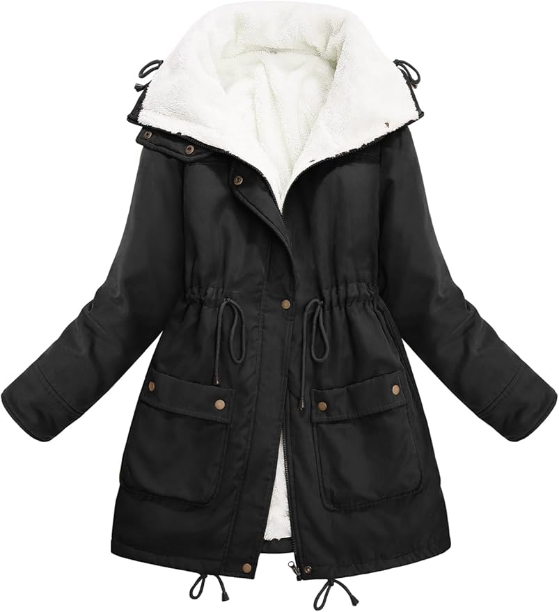 Women Fleece Lined Jacket Cotton Outdoor Thermal Parka Coat