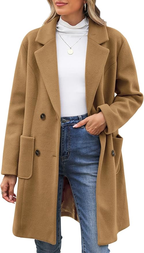 Long Lapel Double Breasted Wool Business Winter Jacket Peacoat