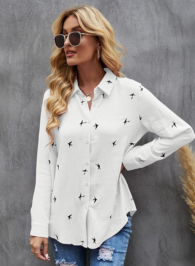 Design: Women long sleeve shirt is loose. The design of the small swallow is added to the monochrome design, Compared to the traditional shirt design, it is more vivid, suitable for everyday, business office or any formal occasion.