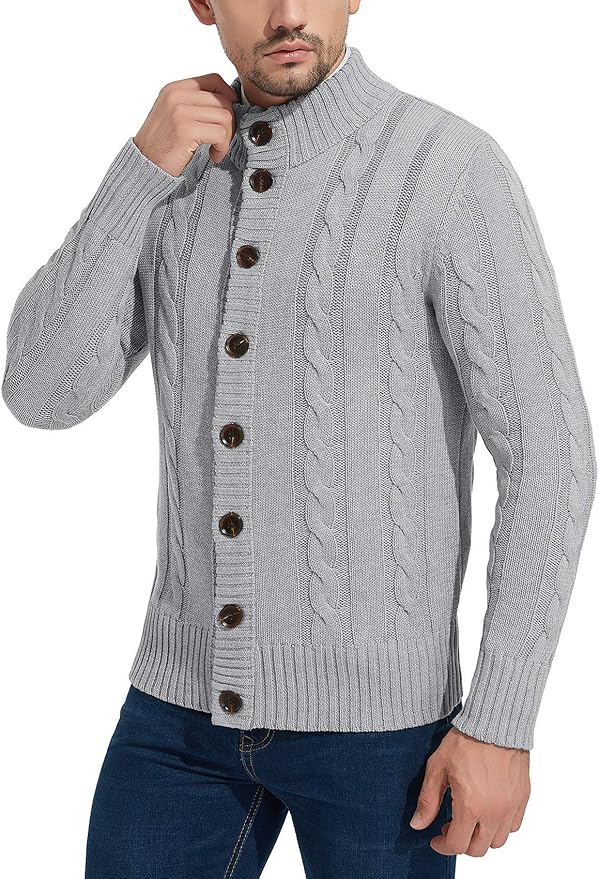 【CLASSIC DESIGN】: High neck stand collar, buttons closure, long sleeve, twisted cable pattern, solid color, basic design, ribbed edge. Slim fit, suitable for casual wear, pullover closure type. Various vintage colors, lightweight and modern basic designed button up sweaters for cold weather.